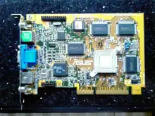 The RIVA 128, or "NV3", was a consumer graphics processing unit created in 1997 by Nvidia. It was the first to integrate 3D acceleration in addition to traditional 2D and video acceleration. Its name is an acronym for Real-time Interactive Video and Animation accelerator.[2]
