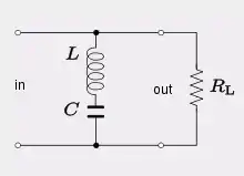 ![]() Figure 9. RLC circuit as a parallel band-pass filter in shunt across the line |