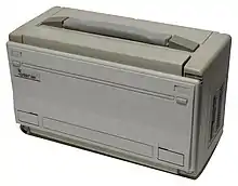 The Rabbit 286 is a portable computer measuring 9.45 by 16 by 8.27 inches (24.0 by 40.6 by 21.0 cm). The unit weighs between 17.6 and 19.8 pounds (8.0 and 9.0 kg), depending on the floppy and hard drive configuration chosen. Its built-in liquid-crystal display measures 9.5 in wide by 6 in tall, or 11 in diagonally. The super-twisted nematic display panel is monochrome, backlit, and has a pixel resolution of 640 by 400. The display housing can be positioned up and tilted for a more comfortable viewing angle. Additionally an external monitor can be hooked up to the computer through the display adapter; the internal display then acts as a double for the user, or it can be shut off by way of a switch on the rear of the computer.[1] External displays supported with the built-in display adapter include MDA, CGA, and Hercules.[2]