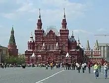 Released during the Cold War era, Raid Over Moscow is an action game in which the player (an American space pilot) has to stop three Soviet nuclear attacks on North America, then fight his way into and destroy a nuclear facility located in Moscow's Kremlin. According to the game's storyline, the United States is unable to respond to the attack directly due to the dismantlement of its nuclear arsenal.[2]