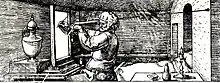 The idea of ray tracing comes from as early as the 16th century when it was described by Albrecht Dürer, who is credited for its invention.[5] Dürer described multiple techniques for projecting 3-D scenes onto an image plane. Some of these project chosen geometry onto the image plane, as is done with rasterization today. Others determine what geometry is visible along a given ray, as is done with ray tracing. [6][7]