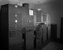 REAC computers played a role in the development of many military projects, such as the Ryan X-13 Vertijet.[6] A REAC was the first computer at Naval Air Weapons Station China Lake, and was instrumental in running simulations in development of the first anti-radiation missile.[7][8] It also was used in the Aeronautical Computer Laboratory at Naval Air Warfare Center Warminster.[9]