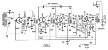 The 22.5 V battery, while now uncommon, is still used in some devices and as of 2020 remains available on the market.[13] The minimum required voltage is lower, about 15 V, below which the radio oscillates. An electrolytic capacitor is connected in parallel to the battery to improve stability. The power switch is coupled with the volume control.