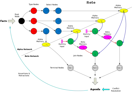 - ↑ Charles, Forgy (1982). "Rete: A Fast Algorithm for the Many Pattern/Many Object Pattern Match Problem". Artificial Intelligence. 19: 17–37. doi:10.1016/0004-3702(82)90020-0.