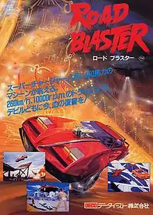 Road Blaster was originally released in 1985 as a laserdisc-based arcade game. Various ports were released throughout history, including versions for the MSX, X1 (both in VHD format), Mega CD/Sega CD, LaserActive (in Mega LD format), Sega Saturn, PlayStation, and 3DO Interactive Multiplayer (prototyped as Turbo Blaster). However, only the Sega CD and Mega LD versions were released outside Japan, under the titles Road Avenger and Road Prosecutor, respectively. The titles were possibly changed to avoid confusion with the similarly titled arcade game RoadBlasters by Atari Games, which was ported to the Mega Drive around the same time.[15] Road Blaster was also released for the Sharp X68000[9] and for Windows in 2011, exclusively in Japan.[16] A unofficial Super NES port of the game titled Super Road Blaster was released in 2012, which uses the MSU-1 chip support. Cobra Command and Road Blaster were ported to iOS by Revolutionary Concepts in 2010 and 2011, respectively. In 2018, a port for the Amiga (OCS and AGA) and the CD32 was also released unofficially.[17]