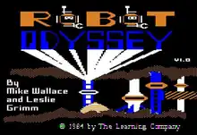 Robot Odyssey is a programming game developed by Mike Wallace and Dr. Leslie Grimm and published by The Learning Company in December 1984. It is a sequel to Rocky's Boots, and it was released for the Apple II, TRS-80 Color Computer, and MS-DOS. Most players have found it challenging.[1] The player is readying for bed when, suddenly, they fall through the floor into an underground city of robots, Robotropolis. The player begins in the sewers of the city with three programmable robots, and must make their way to the top of the city to try to find their way home again.