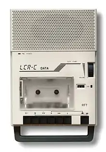 For the purpose of storing programs, the Z 1013 computer is equipped with an interface to connect to standard cassette recorders. Recorders had to comply with minimum requirements for contact configurations and frequency response. Frequently used here were small-scale devices, such as types Geracord, Datacord and later LCR-C DATA, as manufactured by VEB Elektronik Gera. The maximum transmission speed is 1200 bit/s.[8]