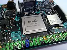 Rockchip (Fuzhou Rockchip Electronics Co., Ltd.) is a Chinese fabless semiconductor company based in Fuzhou, Fujian province. Rockchip has been providing SoC products for tablets & PCs, streaming media TV boxes, AI audio & vision, IoT hardware since founded in 2001. It has offices in Shanghai, Beijing, Shenzhen, Hangzhou and Hong Kong.[4] It designs system on a chip (SoC) products, using the ARM architecture licensed from ARM Holdings for the majority of its projects.[5]