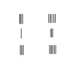 Rod numerals is the only numeric system that uses different placement combination of a single symbol to convey any number or fraction in the Decimal System. For numbers in the units place, every vertical rod represent 1. Two vertical rods represent 2, and so on, until 5 vertical rods, which represents 5. For number between 6 and 9, a biquinary system is used, in which a horizontal bar on top of the vertical bars represent 5. The first row are the number 1 to 9 in rod numerals, and the second row is the same numbers in horizontal form.