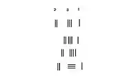 When doing calculation, usually there was no grid on the surface. If rod numerals two, three, and one is placed consecutively in the vertical form, there's a possibility of it being mistaken for 51 or 24, as shown in the second and third row of the adjacent image. To avoid confusion, number in consecutive places are placed in alternating vertical and horizontal form, with the units place in vertical form,[1] as shown in the bottom row on the right.
