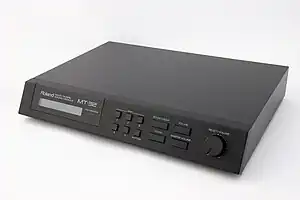 The Roland MT-32 Multi-Timbre Sound Module is a MIDI synthesizer module first released in 1987 by Roland Corporation. It was originally marketed to amateur musicians as a budget external synthesizer with an original list price of $695. However, it became more famous along with its compatible modules as an early de facto standard in computer music. Since it was made prior to the release of the General MIDI standard, it uses its own proprietary format for MIDI file playback.