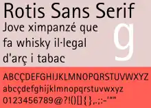 - Rotis sans (lineale humanist sans-serif) — with zero serifs and with minimal variation on stroke width