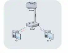 A router on a stick, also known as a one-armed router,[1][2] is a router that has a single physical or logical connection to a network. It is a method of inter-VLAN routing where one router is connected to a switch via a single cable. The router has physical connections to the broadcast domains where one or more VLANs require the need for routing between them.
