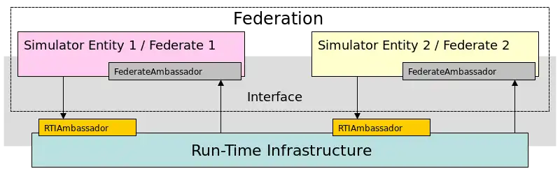 In simulation, run-time infrastructure (RTI) is a middleware that is required when implementing the High Level Architecture (HLA). RTI is the fundamental component of HLA. It provides a set of software services that are necessary to support federates to coordinate their operations and data exchange during a runtime execution. In other sense, it is the implementation of the HLA interface specification but is not itself part of specification. Modern RTI implementations conform to the IEEE 1516 and/or HLA 1.3 API specifications. These specifications do not include a network protocol for RTI. It is up to the implementors of an RTI to create a specification. Due to this, interoperability between RTI products and often, RTI versions, should not be assumed unless the vendor specifies interoperability with other products or versions.