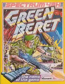 Rush'n Attack, also known as Green Beret[lower-alpha 1] in Japan and Europe, is a run-and-gun and hack-and-slash video game developed and released by Konami for arcades in 1985, and later converted to the Nintendo Entertainment System and home computers.[8] Its North American title is a play on the phrase "Russian attack"[9] due to its Cold War setting. It was ported to home systems and became a critical and commercial success for arcades and home computers.