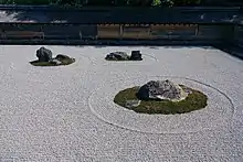 ![]() The kare-sansui (dry landscape) zen garden at Ryōan-ji | |