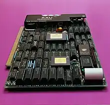 The S-100 bus signals were simple to create using an 8080 CPU, but increasingly less so when using other processors like the 68000. More board space was occupied by signal conversion logic. Nonetheless by 1984, eleven different processors were hosted on the S-100 bus, from the 8-bit Intel 8080 to the 16-bit Zilog Z-8000.[10] In 1986, Cromemco introduced the XXU card, designed by Ed Lupin, utilizing a 32-bit Motorola 68020 processor.[11]