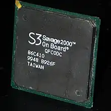 | Savage 2000 (86C410) | 11/1999 | 0.18/0.22 | 125 MHz | 2 x 2 | 500 | 155 MHz | 128-bit | aka GX4. Hybrid process. AGP 4X. Non-functional T&L. |