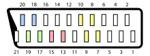 | C | Combined | grey | 1–4, 6, 17–20, 21 | Composite Video and Audio | yes |