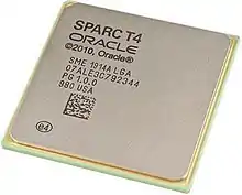 The SPARC T4 is a SPARC multicore microprocessor introduced in 2011 by Oracle Corporation. The processor is designed to offer high multithreaded performance (8 threads per core, with 8 cores per chip), as well as high single threaded performance from the same chip.[1] The chip is the 4th generation[2] processor in the T-Series family. Sun Microsystems brought the first T-Series processor (UltraSPARC T1) to market in 2005.