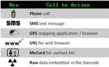 The QR Code standard as defined by Denso-Wave in ISO/IEC 18004 covers the physical encoding method of a binary data stream.[1] However, the Denso-Wave standard lacks an encoding standard for interpreting the data stream on the application layer for decoding URLs, phone numbers, and all other data types. NTT Docomo has established de facto standards for encoding some data types such as URLs, and contact information in Japan, but not all applications in other countries adhere to this convention as listed by the open-source project "zxing" for QR Code data types.[2][3]