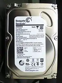 The ST3000DM001 is a hard disk drive released by Seagate Technology in 2011 as part of the Seagate Barracuda series. It has a capacity of 3 terabytes (TB) and a spindle speed of 7200 RPM. This particular drive model was reported to have unusually high failure rates, due to a parking ramp that was made from different materials. The failure rates were approximately 5.7 times higher in comparison to other 3 TB drives, for which Seagate faced a class-action lawsuit.[1]