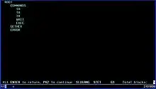 Top-line commands generally apply to the entire file being edited, and include the usual operations such as saving, searching, replacing, movement around the file, and so on (over 60 in all).