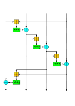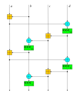 ![]() The Salsa quarter-round function. Four parallel copies make a round. | |