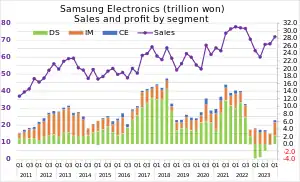 On 6 April 2017, Samsung Electronics reported that financials were up for the company in the quarter. The year prior, "memory chips and flexible displays accounted for about 68% of Samsung's operating profit in the final quarter of 2016, a change from previous years when the smartphone business was the main contributor."[84]