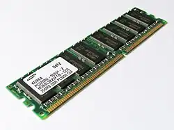 Samsung had a number of technological breakthroughs, particularly in the field of memory which are commonplace in most electrical products today. This includes the world's first 64 MB DRAM in 1992, 256 MB DRAM in 1994, and 1 GB DRAM in 1996.[43] In 2004, Samsung developed the world's first 8 GB NAND flash memory chip, and a manufacturing deal was struck with Apple in 2005. A deal to supply Apple with memory chips was sealed in 2005, and Samsung remains a key supplier of Apple components as of October 2013, manufacturing the A7 processors inside the iPhone 5S model.[44][45]