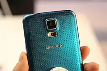 The Galaxy S5 received mostly positive reviews; the phone was praised for its display, hardware, camera, long battery life, and incorporating water resistance while retaining a removable battery and MicroSD card slot, making it the final in its series with the former.[9] However, the S5 was criticized for bloatware, its unresponsive fingerprint scanner, and its ostensibly non-"premium" polycarbonate in light of rival smartphones' metal or glass bodies.[7][10][11]