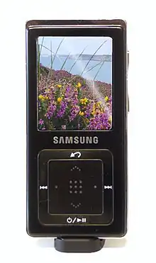 - ↑ "Samsung's pendant-style YP-F1 MP3 player". 23 March 2005. Retrieved 15 August 2018.