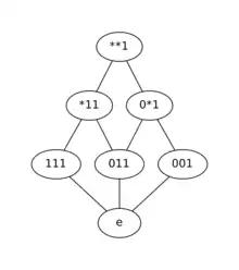 Schemata can be partially ordered. For any we say if and only if . It follows that is a partial ordering on a set of schemata from the reflexivity, antisymmetry and transitivity of the subset relation. For example, . This is because .