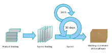 Backlog refinement is a process by which team members revise and prioritize a backlog for future sprints.[31] It can be done as a separate stage done before the beginning of a new sprint or as a continuous process that team members work on by themselves. Backlog refinement can include the breaking down of large tasks into smaller and clearer ones, the clarification of success criteria, and the revision of changing priorities and returns. It is recommended to invest of up to 10 percent of a team's sprint capacity on backlog refinement.[13]