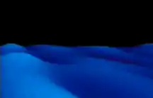 RaytracingAgain there is a fade out and a fade in, this time we are looking at a scene with two spheres, the words "Ten seconds to transmission" are spoken (sampled from the 1989 movie Batman),[6] and a sword starts translating towards the camera. The spheres will display a reflection of the sword as well as a reflection of the aforementioned reflection in the other sphere. The scene was rendered using Future Crew's homemade ray tracing software. ![]() Water WaterAs the scene changes again, this time the image rendered will be of a surface changing shape, similar to that of water. This scene is rendered using a Voxel landscape rendering technique. |
