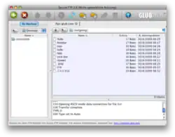 Secure FTP is a Java-based FTP client developed by Glub Tech. Some of its features include: FTPS (FTP over SSL/TLS), bookmarks, compression, proxy and firewall support, multiple connections, chmod, drag-and-drop, command-line scripting, and localization for 8 languages, including English, French, German, Spanish, Japanese, Portuguese, Brazilian Portuguese and Russian. It can be used via its GUI or CLI.