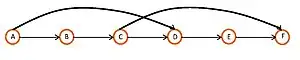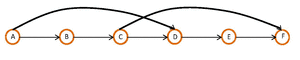 Node protection that is provided allows a path to be provisioned if a node goes offline. In the diagram, "Overlapped link", we can see that link C-D has protection from segment and segment . This type of protection allows node C to fail and for the backup of segment to be used. The path would then be node A to D to E to F. This would work the same if node D failed. The corresponding path to that failure would be node A to B to C to F.