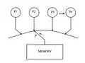 Conceptually, there is single global memory and a "switch" that connects an arbitrary processor to memory at any time step. Each processor issues memory operations in program order and the switch provides the global serialization among all memory operations[2]