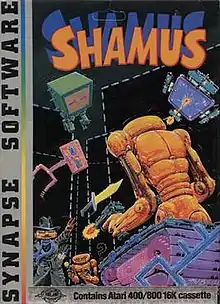 Shamus is a shooter with light action-adventure game elements written by Cathryn Mataga (credited as William Mataga) and published by Synapse Software. The original Atari 8-bit computer version was released on disk and tape in 1982.[1] According to Synapse co-founder Ihor Wolosenko, Shamus made the company famous by giving it a reputation for quality.[2] "Funeral March of a Marionette", the theme song from Alfred Hitchcock Presents, plays on the title screen.
