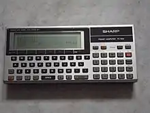 The Sharp PC-1600 was a pocket computer introduced by Sharp in 1986 as a successor to the PC-1500. The PC-1600 provided compatibility with its predecessor through the use of a slave CPU that could run assembly language programs targeting the older machine. It could also switch into a compatibility mode so that programs written for the single line display of the PC-1500 could work with the four line display of the PC-1600.