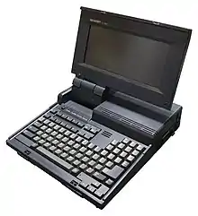 The PC-4500 series was developed by Sharp Electronics of Japan and co-developed by Vadem Inc., an original design manufacturer and computer design consultant of San Jose, California.[1] The computer features the 80188-compatible NEC V40 central processing unit with a clock speed selectable between the IBM PC standard 4.77 MHz and 7.16 MHz.[2] The NEC V40, with its 16-bit internal data bus and 8-bit external data bus, was chosen to evade a contemporary tariff on imported laptops with pure 16-bit CPUs. Personal computers based on the 80188 processor and its derivatives were relatively uncommon.[3]