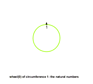 Start with wheel 0 with length 1, representing all natural numbers 1, 2, 3...: