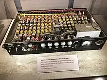 Simon was a relay-based electromechanical computer, described by Edmund Berkeley in a series of thirteen construction articles in Radio-Electronics magazine, from October 1950. Intended for the educational purpose of demonstrating the concept of a digital computer, it could not be used for any significant practical computation since it had only two bits of memory. A working model was first built by two graduate students at Columbia University for less than US$300 ($3,650 in 2022 dollars) in parts.[1] Some have described it as the "first personal computer",[2] although its extremely limited capacity and its unsuitability for use for any purpose other than as an educational demonstration make that classification questionable.