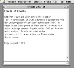 SimpleText is the native text editor for the Apple classic Mac OS.[1] SimpleText allows text editing and text formatting (underline, italic, bold, etc.), fonts, and sizes. It was developed to integrate the features included in the different versions of TeachText that were created by various software development groups within Apple Computer.[2]