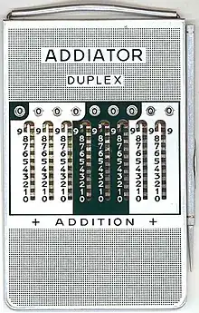 Addiators appeared in newspaper advertisements as early as 1921, listed at a price of £4 (equivalent to £224.15 in 2023) in the Daily Record of Scotland.[2] As of 1968, Addiators were advertised in American newspapers starting at $3.98 each ($35.00 in 2023).[3]
