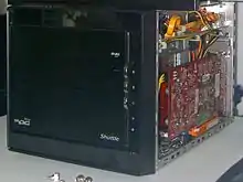 AOpen Inc. produced a stackable S120[27] case, allowing the user to stack up to four components vertically or horizontally. These layers can be for add-on cards, optical drives, and hard drives, using either internal power supplies or external AC adapter power sources. After the S120, AOpen made more small form factor cases for systems with Micro ATX and Mini-ITX.