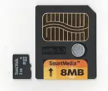 SmartMedia is an obsolete flash memory card standard owned by Toshiba, with capacities ranging from 2 MB to 128 MB. The format mostly saw application in the early 2000s in digital cameras and audio production. SmartMedia memory cards are no longer manufactured.