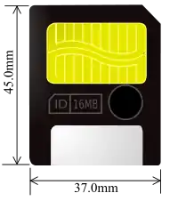 The SmartMedia format was launched in the summer of 1995 to compete with the MiniCard, CompactFlash, and PC Card formats. Although memory cards are nowadays associated with digital cameras, digital audio players, PDAs, and similar devices, SmartMedia was pitched as a successor to the computer floppy disk. Indeed, the format was originally named Solid State Floppy Disk Card (SSFDC), and the physical design resembles a miniature 3.5" floppy disk.[1] The SSFDC forum, a consortium aiming to promote SSFDC as an industry standard, was founded in April 1996, consisting of 37 initial members.[2]
