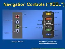 At the Windows Hardware Engineering Conference of 2003, Gates unveiled a new set of hardware-based navigational controls codenamed XEEL, designed to create a consistent navigation experience across Windows-based devices, such as smart phones, tablet PCs, and those powered by SPOT.[23][24] Microsoft intended for XEEL to create a consistent navigation experience across hardware devices that equaled the software interface navigation consistency introduced by the mouse scroll wheel.[25]