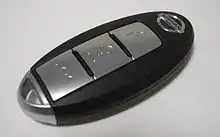 A smart key is an electronic access and authorization system that is available either as standard equipment or an option in several car designs. It was developed by Siemens in 1995 and introduced by Mercedes-Benz under the name "Keyless-Go" in 1998 on the W220 S-Class,[1] after the design patent was filed by Daimler-Benz on May 17, 1997.[2]